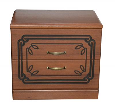 Прикроватные тумбы (500*450*340 мм) имеют по два выдвижных ящика. Узоры на фасадах гармонирует с остальными элементами гарнитура.