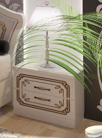 Прикроватные тумбы (500*450*340 мм) имеют по два выдвижных ящика. Узоры на фасадах гармонирует с остальными элементами гарнитура.
