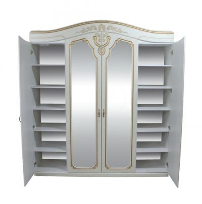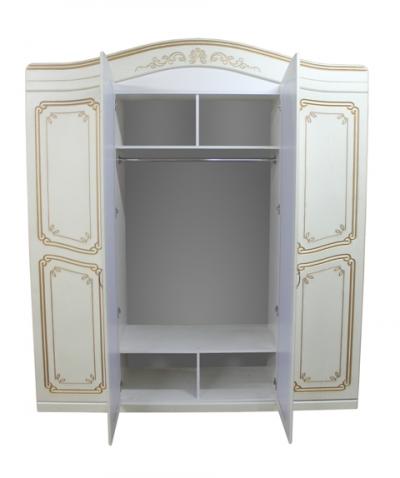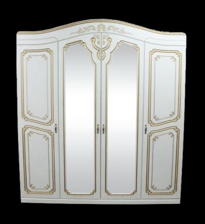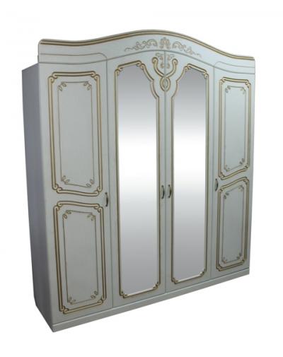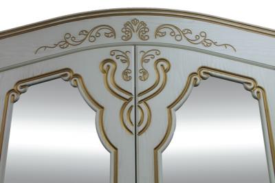 Шкаф гарнитура спальни Альба светлая (2000*2300*500) имеет четыре двери, две центральные из которых зеркальные. Вверх шкафа обрамлен изогнутым изящным карнизом.
