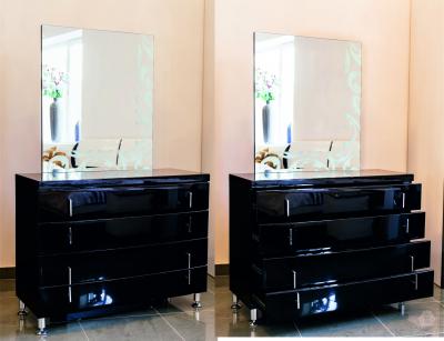 Комод с зеркалом Чёрный Бриллиант (1000*380*1545 мм) покрыт устойчивой чёрной глянцевой краской. Цвет комода привносит сдержанность в интерьер, а хромированные детали – современность.