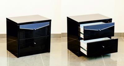 Прикроватная тумба Чёрный Бриллиант (520*380*490 мм) являются эффектным дополнением к кровати. Небольшие хромированные ручки помогут открыть один из двух выдвижных ящиков и достать необходимые вещи.
