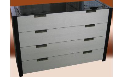Комоды Мадера Light венге могут иметь четыре широких (1300 мм) или шесть узких (700 мм) выдвижных ящика. Все ящики одинаковой высоты. На фасадах комода с 4 ящиками устанавливается по две врезные ручки, на фасадах комода с 6 ящиками - по одной.