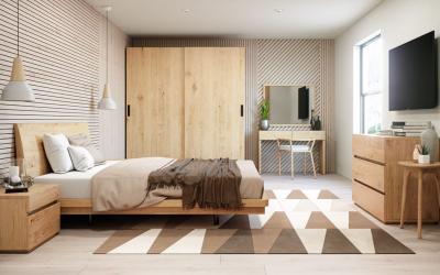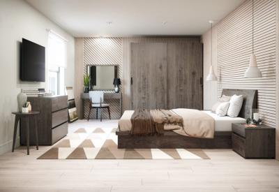 Эта спальня подойдет тем, кто ценит в интерьере элегантность, удобство и функциональность. Стиль модерн предполагает свободу, простоту линий и сдержанность. Свобода в этом стиле выражается не в больших пространствах, а в минимализме и гармонии. Мебели в интерьер должно быть ровно столько, чтобы создать уютную и располагающую к отдыху атмосферу.