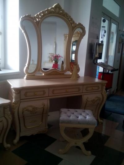 Туалетный столик с зеркалом (1630*520*2000 мм) Широкая столешница вместит множество милых сердцу безделушек. Благодаря трём зеркалам вы сможете полюбоваться собой во всей красе.