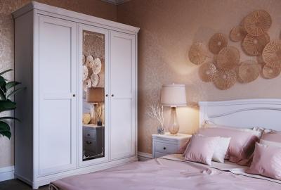 Шкаф спальни Ривьера крем может иметь 2 или 3 распашные двери. На средних дверках устанавливаются зеркала во всю высоту дверей.
