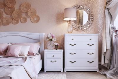 Прикроватные тумбы Ривьера крем имеют ширину 518 мм и снабжены двумя выдвижными ящиками. Верхний ящик неглубокий, имеет точечную ручку, нижний ящик глубже, снабжается ручкой-дужкой.