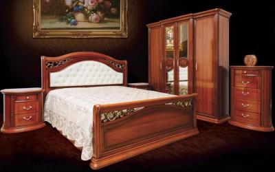 Спальня Валенсия орех от Мир Мебели София создана для тех, кто хочет наполнить спальную комнату нотками природной естественности, красоты и роскоши. Мебель привлекает классическими формами, позолоченной фурнитурой, резным декором и лакированными поверхностями.