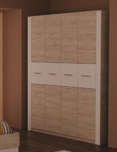 Шкаф Вирджиния Лайт имеет четыре двери. Отделка фасадов контрастным ДСП.