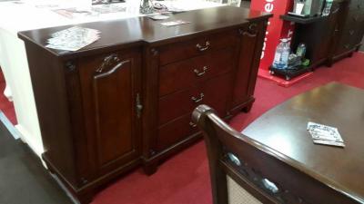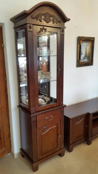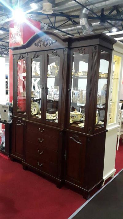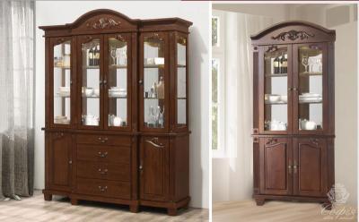 Лицевые поверхности элементов украшены резьбой. Витрины оборудованы подсветкой.