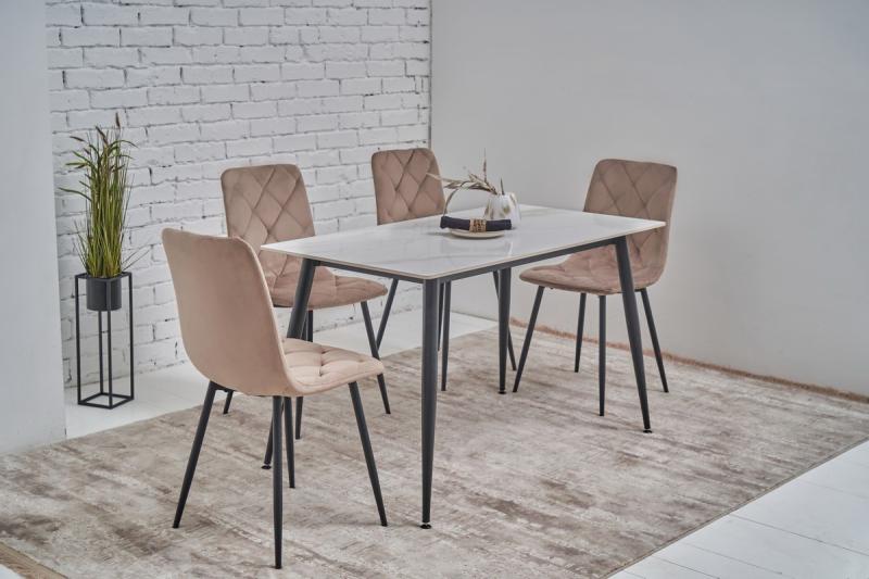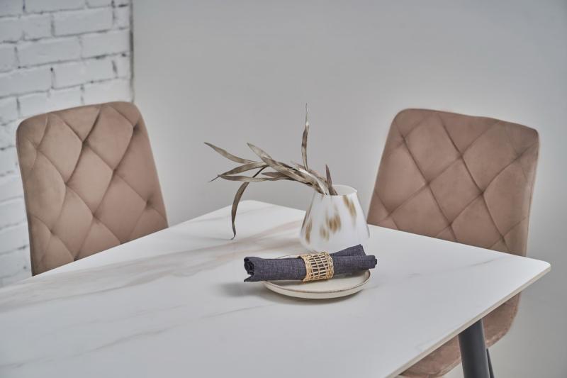 Обідній керамічний стіл TM-100 в кольорі Олімпо Вайт є ідеальним поєднанням сучасного стилю та практичності. Його елегантний білий колір стільниці, виконаний з глянцевої кераміки, імітує натуральний мармур з характерними прожилками. Цей колір надає столу свіжості та чистоти, створюючи світлу та повітряну атмосферу в інтер'єрі.
