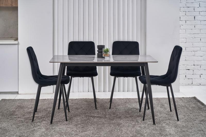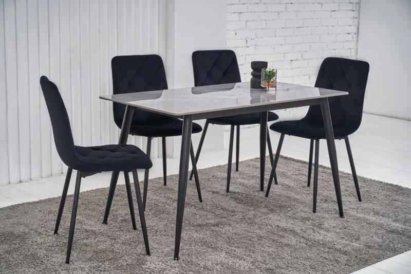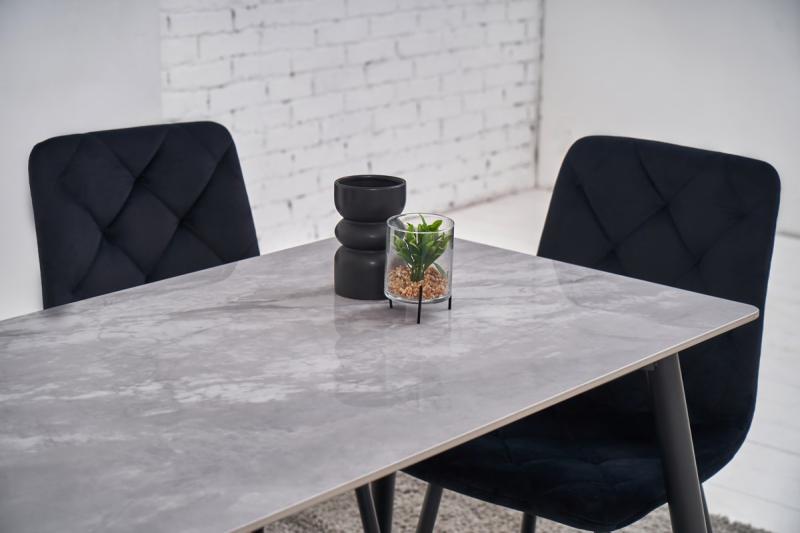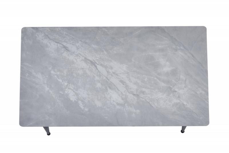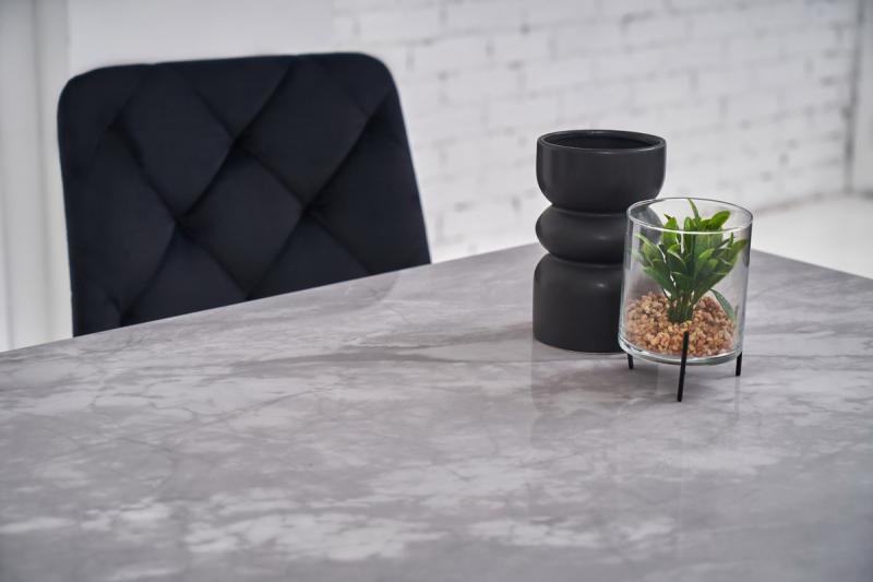 Стільниця виконана з глянцевої кераміки кольору Ребекка Грей. Цей відтінок являє собою елегантний сірий з тонкими прожилками, які надають столу глибини та вишуканості. Глянцева поверхня додає розкішності та відбиває світло, що допомагає візуально розширити простір і створити світлу атмосферу. Кераміка має високу стійкість до пошкоджень і легкість в догляді.