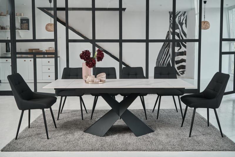 Стілець обтягнутий шкірзамінником, який виглядає естетично та нагадує натуральну шкіру. Цей матеріал легко чистити, що є важливим для підтримки чистоти меблів у повсякденному використанні.