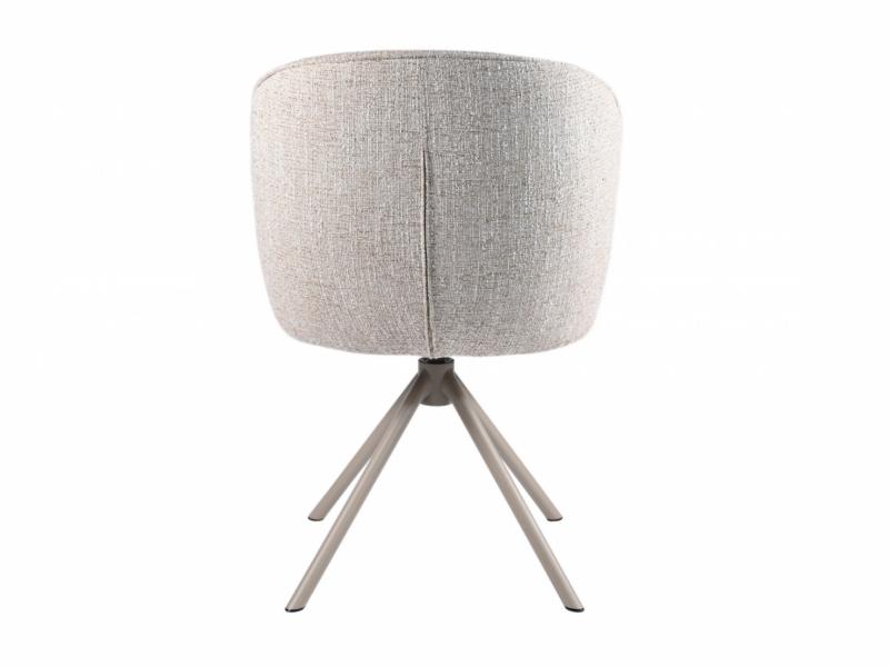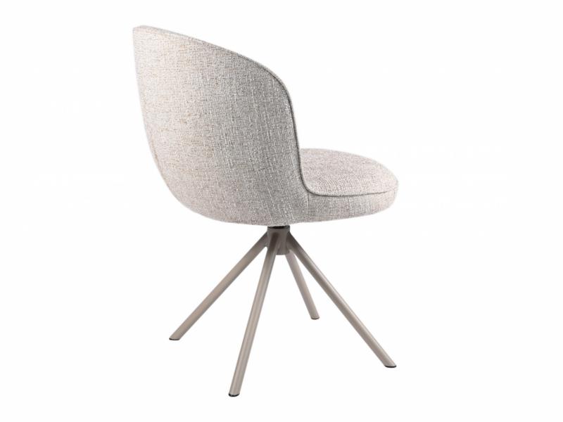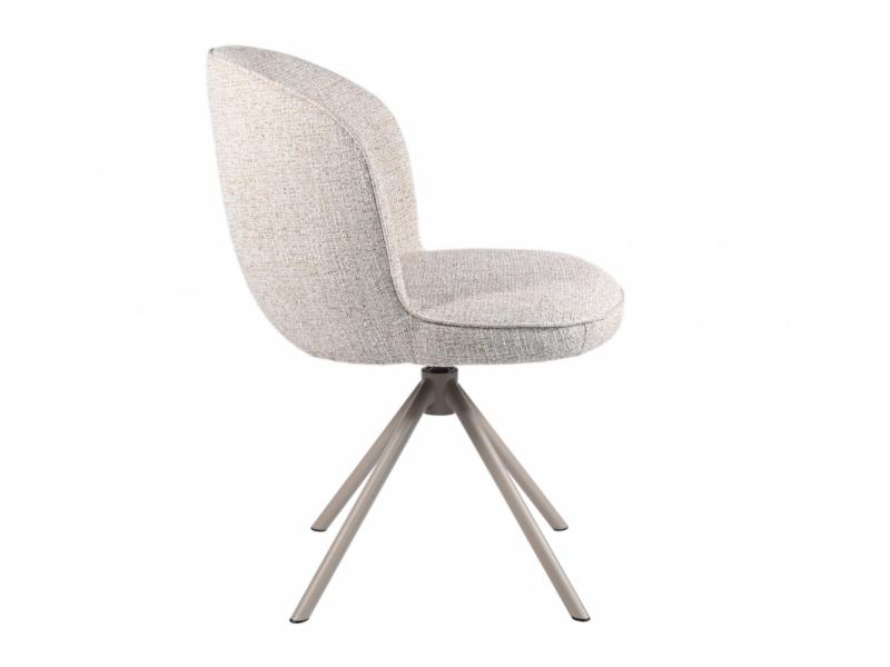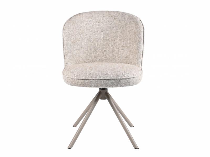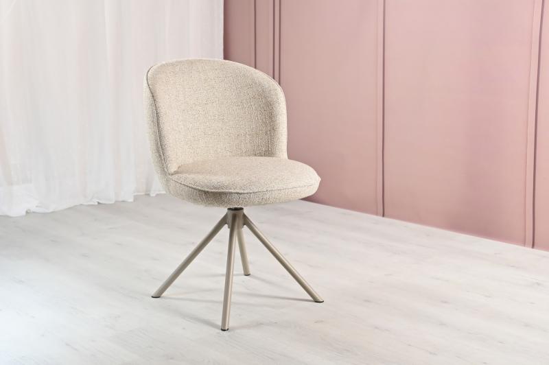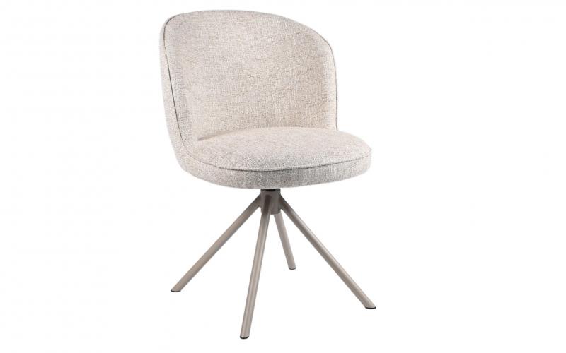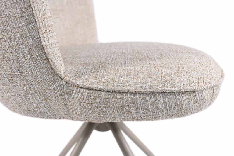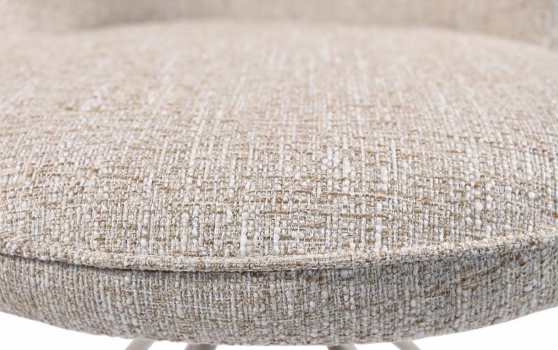 Ця модель має обертальну основу на 360° з автоповоротом, що забезпечує зручність рухів та мобільність. Оббивка з високоякісного твиду у відтінку "френч ваніль" виглядає витончено та приємно на дотик. Теплий відтінок ванілі надає стільцю легкості та розкішного вигляду, гармонійно поєднуючись з капучиновими металевими ніжками, що додають елегантності.