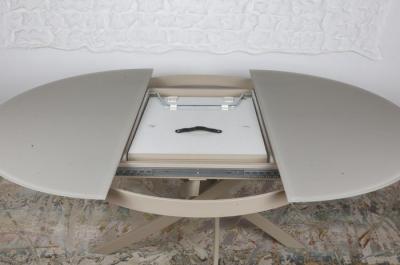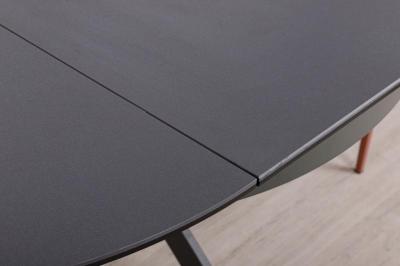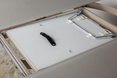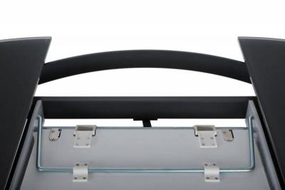 В сложенном виде стол Кембридж (Cambridge) имеет длину столешницы 125 см. В разложенном состоянии размер столешницы увеличивается до 175 см за счет двух дополнительных панелей из МДФ. Раскладной механизм изготовлен из металла и отличается долговечностью и надежностью.
