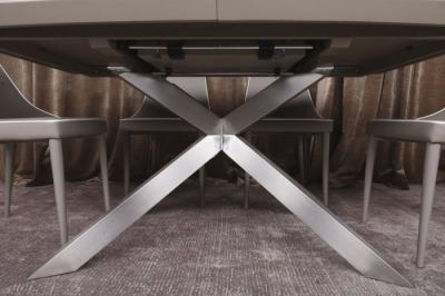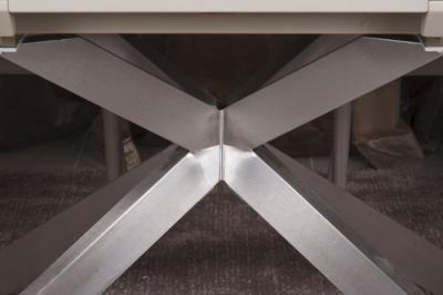 Ноги стола Портланд (Portland) имеют крестообразную форму. Они изготовлены из нержавеющей стали, и вся конструкция производит впечатление мебели с космического корабля.
