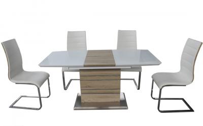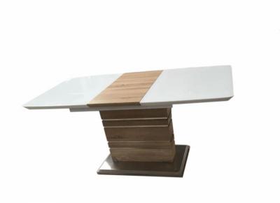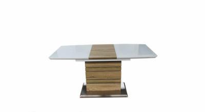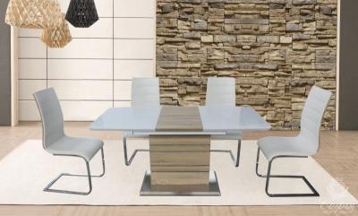 Обеденный стол Бергамо от ТМ София - отличный стол с прямыми линиями форм, который по дизайну подойдет к любой современной кухни, а в разложенном состоянии за ним может поместиться небольшая компания. Каркас стола и вставка столешницы окрашены в один цвет.