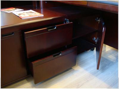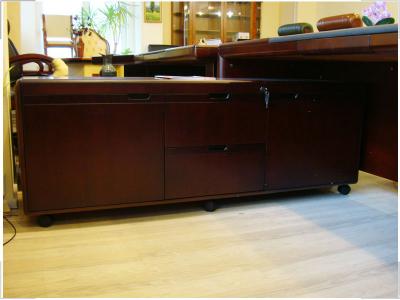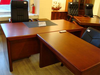 YDK 315 - классический кабинет руководителя. При изготовлении используются натуральные материалы. Для вставки в столешницу используется высококачественная кожа. Отдельно в комплект кабинета может входить брифинг-приставка или шкаф YCB 523С.