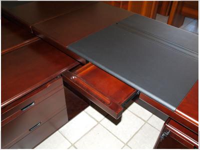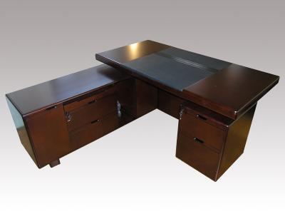 При изготовлении используются натуральные материалы: шпон, дерево, кожа и МДФ. В комплект стола входят встроенные малая тумба и боковой помощник. Рекомендуем комплектовать кабинеты шкафами YCB 5101 или YCB 503.