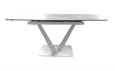Стол Elvi (Элви) - небольшой раскладной стол с керамической столешницей и оригинальной ножкой. Стол очень практичный и надёжный в эксплуатации благодаря использованию сверхпрочной керамики. Компактные габариты стола в сложенном виде позволят разместить его в небольшом помещении. Торцевой раздвижной механизм позволяет увеличить ширину столешницы суммарно на 60 см. Две боковые панели по 30 см спрятаны по бокам стола под основной столешницей. Это очень удобно, так как вы можете увеличивать ширину столешницы только с одной стороны или сразу с двух. Разложить стол очень просто: нужно потянуть дополнительную панель на себя и поднять ее. В сложенном виде стол рассчитан на 4 человек, а в разложенном - на 6. Модель имеет основание-колонну необычной формы - в виде двух сходящихся ножек треугольно сечения на устойчивой платформе.