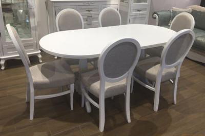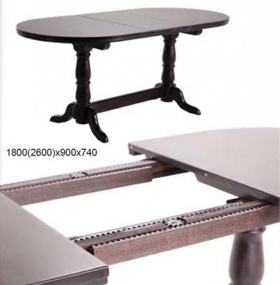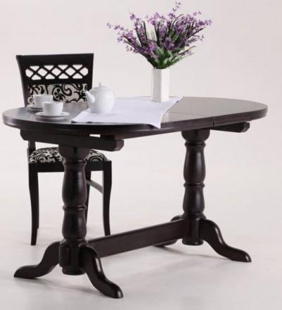 Стол Гирне 01 – овальный обеденный раскладной стол на двух опорах, соединенных внизу поперечиной. Выполняется в классическом стиле. Вставки позволяют увеличить размер столешницы на 800 мм.