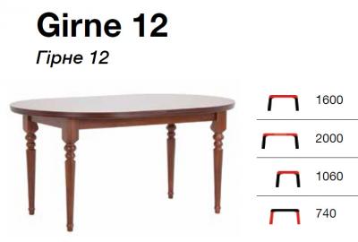 Стол Гирне 12 – овальный обеденный раскладной стол на четырех ножках. Выполняется в классическом стиле. Вставка позволяет увеличить размер столешницы на 400 мм.