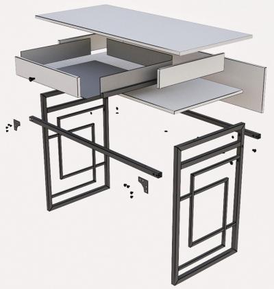 Стол рабочий Квадро от компании Металл-Дизайн выполняется на металлическом основании с полками из ДСП.