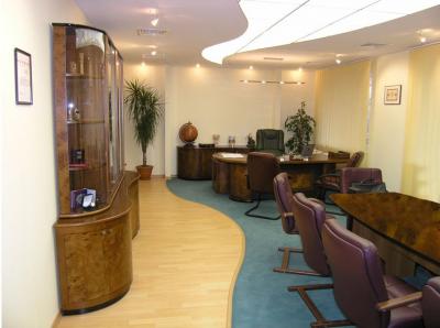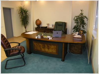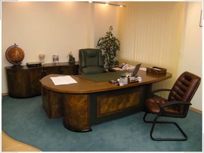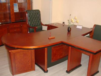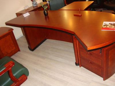 Форма стола Капитал (Capital) позволяет использовать его закругленную часть для ведения переговоров с посетителями, а мобильные помощник и тумба на колесиках дают возможность иметь все под рукой, оставляя свободное место для обустройства рабочей зоны. В изготовлении мебели используется высококачественный шпон и натуральная кожа.