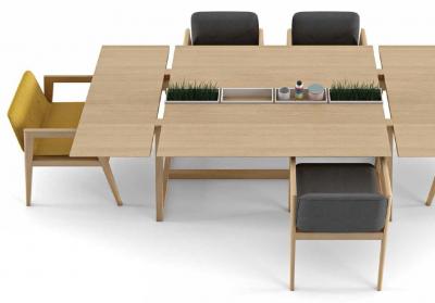 Стол Сикс – прямоугольный обеденный нераскладной стол на 2-х трапециевидных опорах с перемычкой внизу. Выполняется в современном стиле.