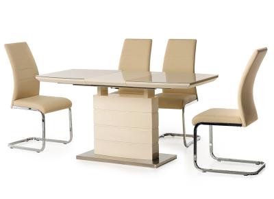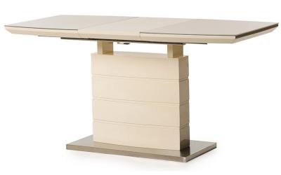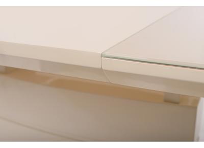 Стол ТММ-50-2 молочный от ТМ Vetro Mebel украсит вашу гостиную или кухню в современном стиле. Основание стола выполнено из глянцевого МДФ и матовой нержавеющей стали, столешница - из каленого глянцевого стола и глянцевого МДФ.