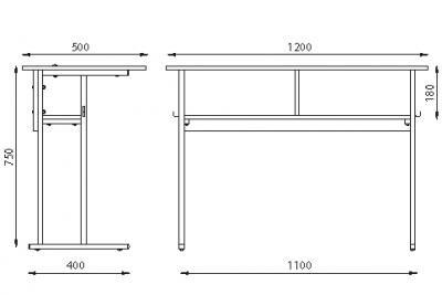 Стол ученический Е-162 снабжен экраном, полкой, а также крючками для подвешивания ученического портфеля. Столешница, экран и полка изготовлены из ДСП толщиной 16 мм. Кромка столешницы - ПВХ толщиной 0.8 мм, кромка остальных деталей - лента меламиновая. Разборная металлическая рама изготовлена из трубы 20х20х1 мм и может быть окрашена порошковой краской в чёрный либо алюминиевый цвет.