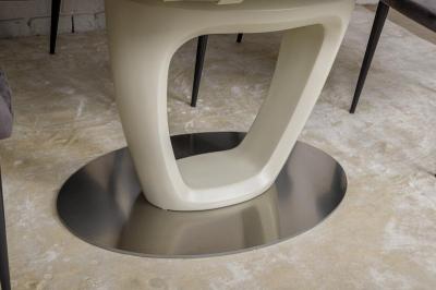 Особенность стола - тонкое основание. Это позволяет вплотную придвинуть к столу стулья, максимально экономя при этом место в комнате.