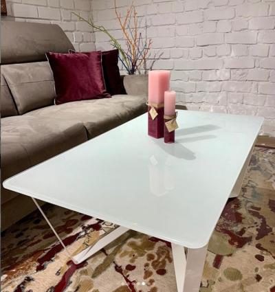 Столешница стола журнального Лутон (Luton) имеет прямоугольную форму с закругленными краями. Выполнена из матового закалённого стекла. Металлические ножки окрашиваются в цвет столешницы.