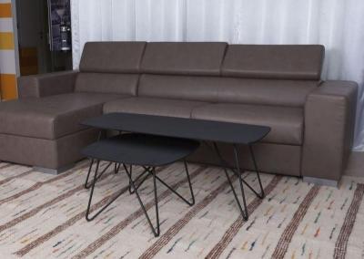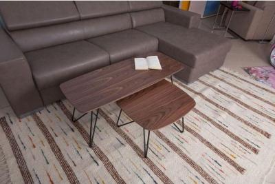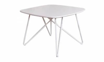 Прямоугольная и квадратная столешница с закруглёнными краями и углами изготовливается из качественного МДФ толщиной 18 мм, окрашенного или покрытого шпоном. База столиком выполняется из металла, окрашенного в цвет столешницы. Ножки имеют оригинальную форму.
