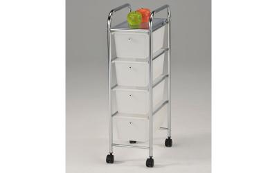 Каркас столика для хранения W-117 выполнен из хромированной металлической трубы диаметром 19 мм. Конструкция очень устойчивая и надежная. В комплект входят четыре выдвижных ящика. Для удобства устройство оснащено колесиками. Система идеально подойдет для салонов, парикмахерских, клиник и массажных кабинетов, а так же для домашнего использования.