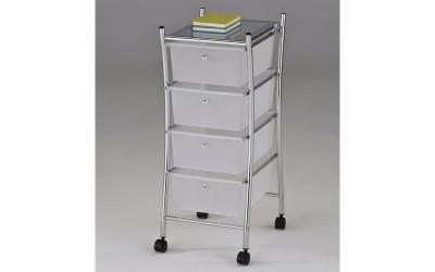Каркас столика для хранения W-118 (SR-1347) выполнен из хромированной металлической трубы диаметром 19 мм. Конструкция очень устойчивая и надежная. В комплект входят четыре выдвижных ящика. Для удобства устройство оснащено колесиками. Система идеально подойдет для салонов, парикмахерских, клиник и массажных кабинетов, а так же для домашнего использования.