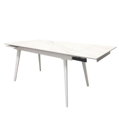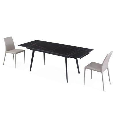 Стол Хьюго (Hugo) - обеденный стол среднего размера с удобным раскладным механизмом. Универсальная стилистика позволит вписать стол как в интерьеры, приближённые к классике, так и в современные пространства. Чистые линии, чёрная или белая керамическая столешница, изящные ножки в тон столешницы - ничего лишнего и претенциозного.