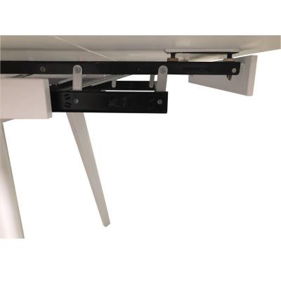 Стол прямоугольной формы оснащён раздвижным механизмом, который позволяет при необходимости увеличить полезную площадь столешницы на 60 см. Две дополнительные панели спрятаны по бокам стола под основной столешницей. Это очень удобно, так как вы можете увеличивать столешницу постепенно, по необходимости, сразу на 60 см или только на 30 см с одной стороны. Разложить стол очень просто: нужно потянуть дополнительную панель на себя, выдвинуть и зафиксировать её.