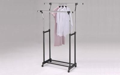 Стойка для одежды W-25 (CH-4375) выполнена из прочного металла, верх стойки хромированный, низ – окрашен черной эмалью. Стойка имеет две перекладины, расстояние между которыми позволяет свободно разместить два ряда одежды. Перекладины расположены на разной высоте, поэтому пользоваться стойкой для одежды W-25 (CH-4375) смогут даже дети.