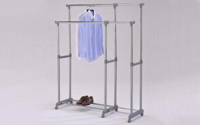 Стойка для одежды W-63 (CH-4566) с двумя штангами. Очень удобная мобильная стойка для одежды, которая будет уместна в большой гардеробной, модельном агентстве или дизайн-студии.