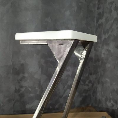 Стул барный Зетт от компании Металл-Дизайн выполняется на металлическом основании и с сиденьем из ДСП или дерева. Изделие без подлокотников.