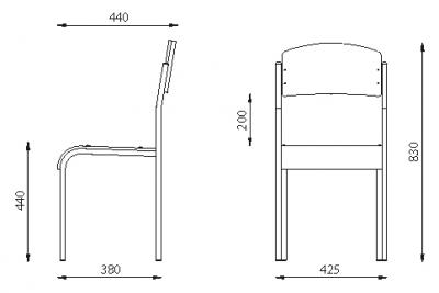 Стул ученический Е-261 предназначен для детей 6-й возрастной категории. Сидение и спинка модели выполнены из натуральной фанеры из березового шпона, покрытой бесцветным лаком, рама изготовлена из трубы 20х20 мм и может быть окрашена порошковой краской в чёрный или алюминиевый цвет.