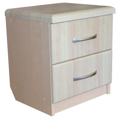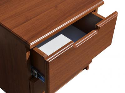 Тумба прикроватная П004 имеет два выдвижных ящика одинаковой высоты. На каждом фасаде врезня ручка.