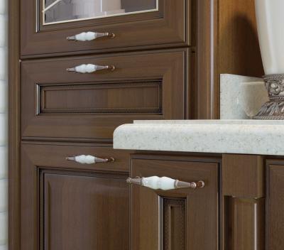 Фасады ванной Каролина изготовляются из натурального дерева (ольхи) и тонируются под орех.