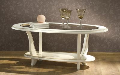 Журнальный стол Опал изготовлен из натурального дерева в двух видах. Столешница журнального стола Опал может быть выполнена из стекла или из дерева. Цвет - орех и слоновая кость с золотой патиной или с бежевой патиной. Цвет стекла: натуральное и тонированное.