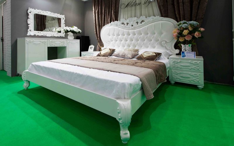 Эта спальня в классическом стиле легкого барокко украшена объемными элементами, которые имитируют изысканную ручную резьбу по дереву. Цвет – белый глянец.